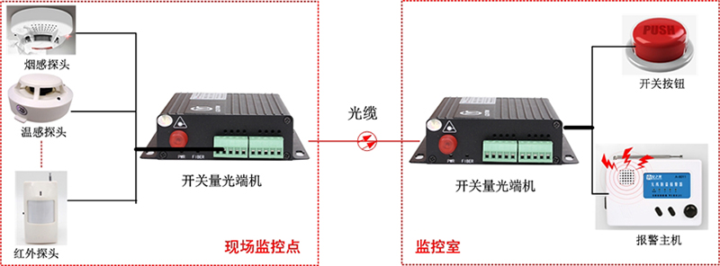 本开关量光端机,提供1-32路单/双向开关量在光纤中传输,该产品解决了电磁干扰、地环干扰和雷电破坏的难题,提高了数据通讯的可靠性、安全性和保密性,可广泛用于各种工业控制、过程控制和交通控制等场合,特别适合银行、电力及对电磁干扰环境有特殊要求的部门和系统。