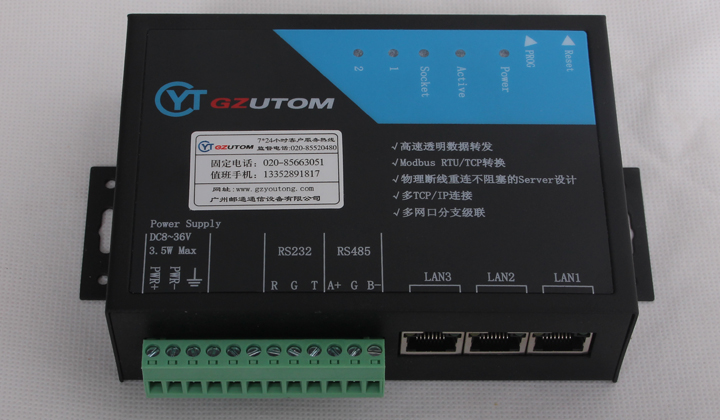 传输距离:RS-485/422端1200米,RS-232口15米